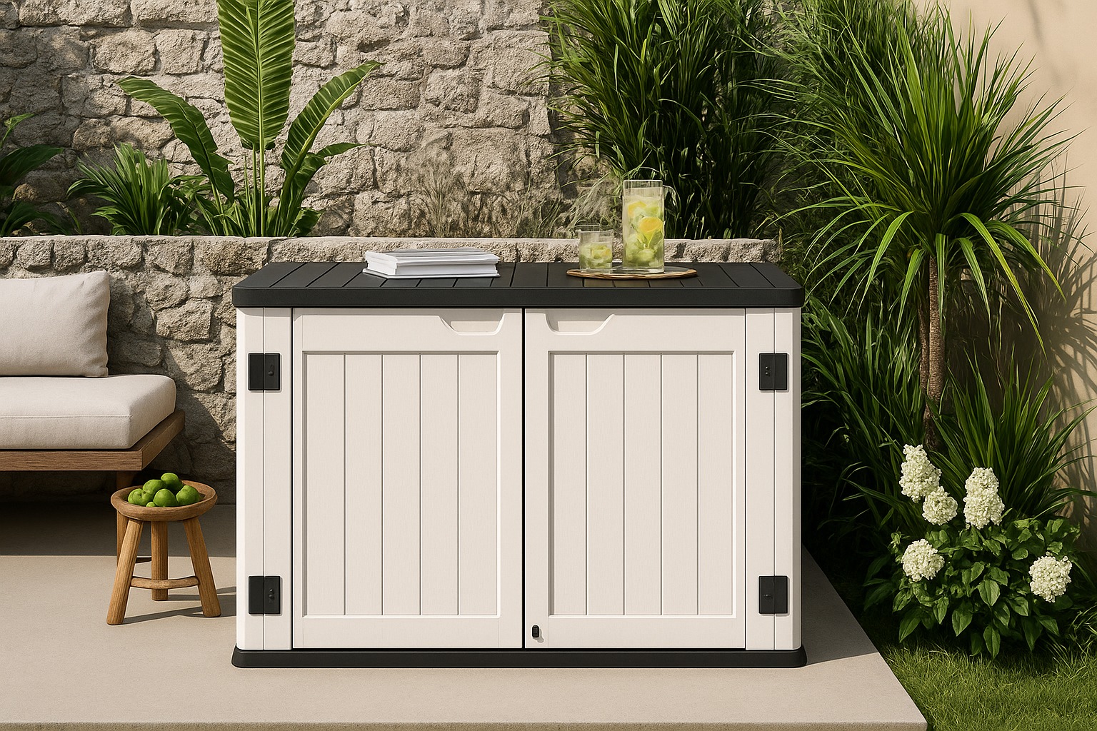 120 Gallon Waterproof Resin Deck Box – Outdoor Storage Box with Lockable Lid