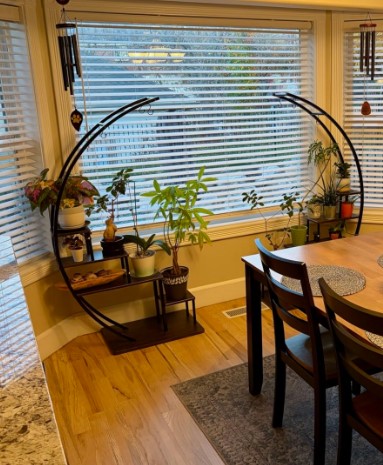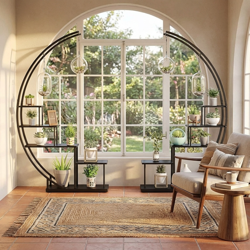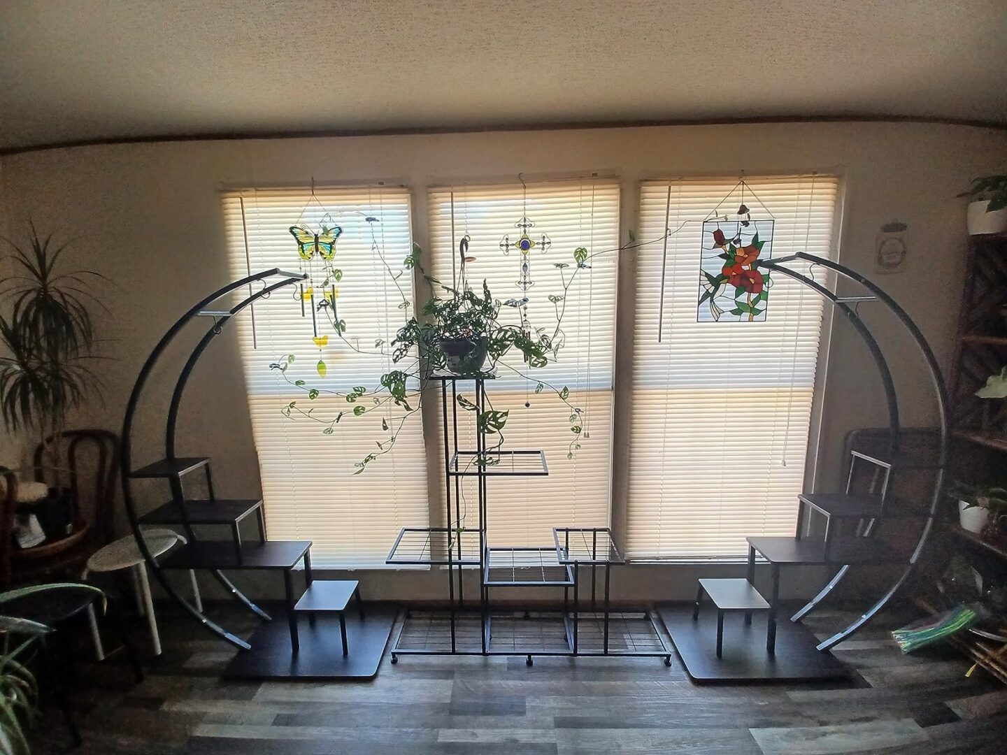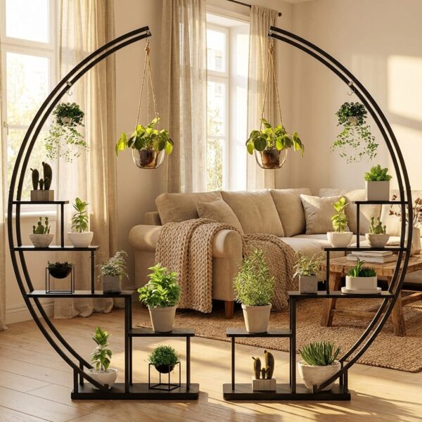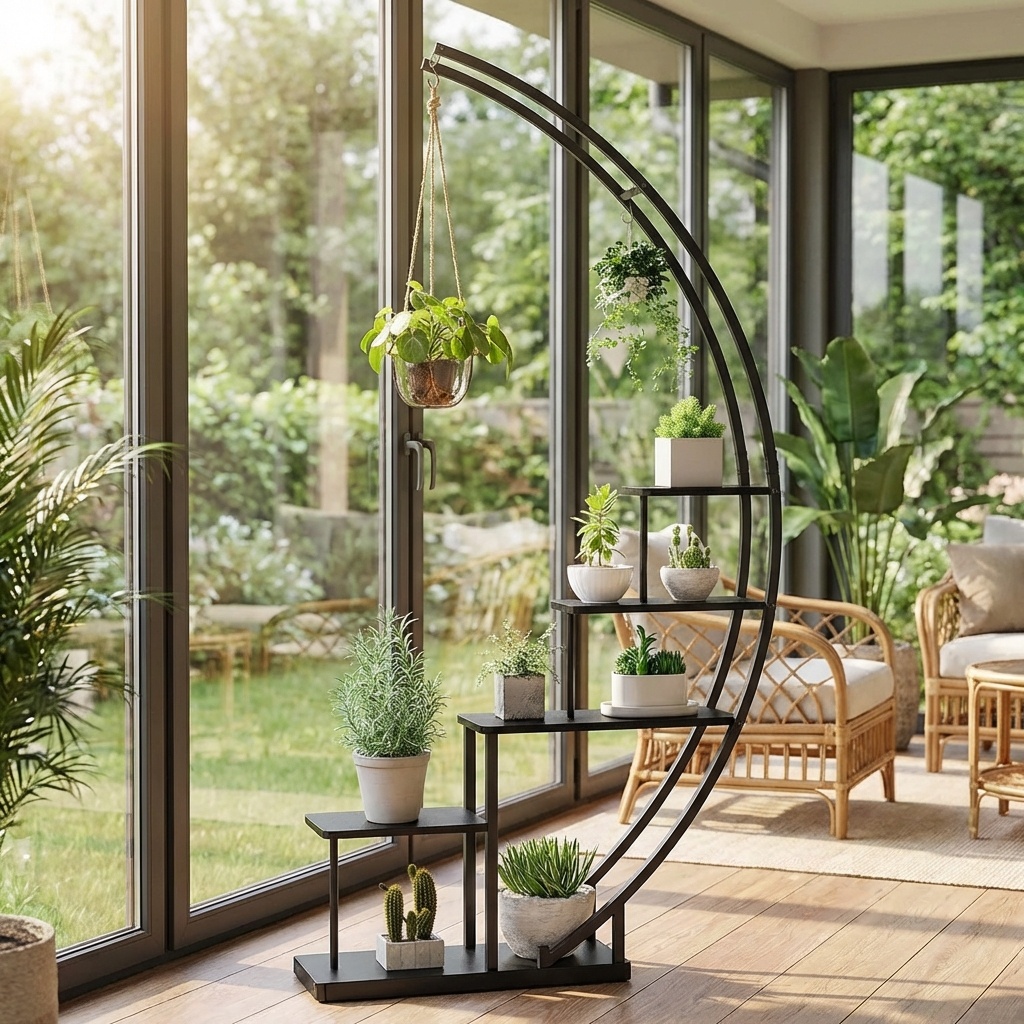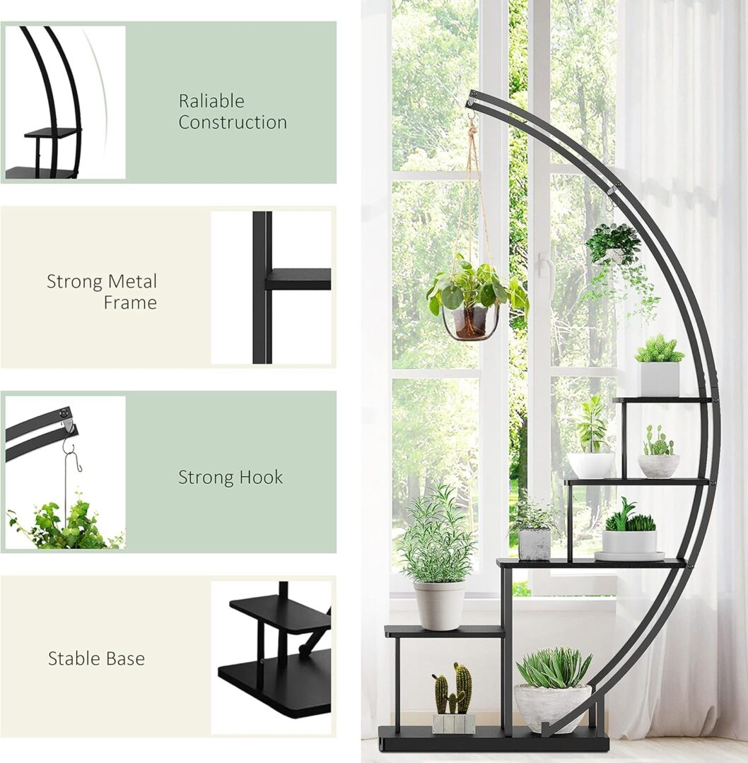 I love the creative half moon shape—it really stands out compared to regular plant racks. The stand feels solid and holds my ceramic pots without any issue. It’s both practical and decorative, which I really appreciate.