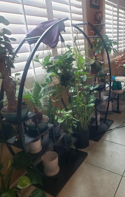 I bought this for my indoor plants and it looks beautiful. The tiered design allows each plant to get enough light, and the black finish complements my decor perfectly. It arrived in great condition and was easy to put together.