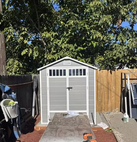5 reviews for 6 x 4.4 FT Gray Outdoor Large Resin Storage Shed with Floor & Lockable Door