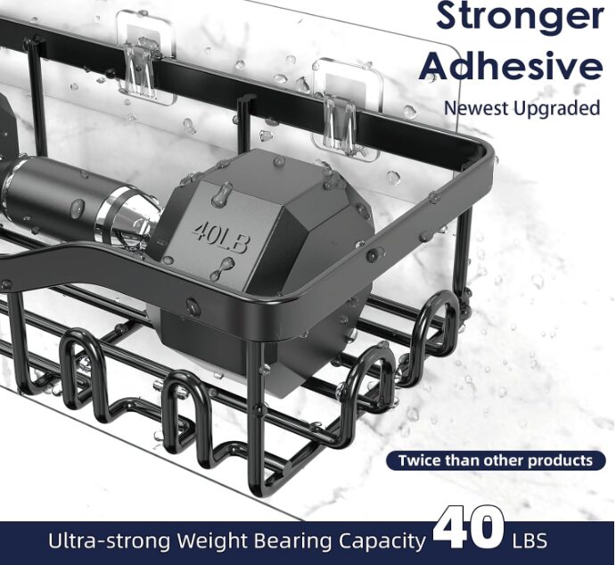 Strong Adhesive & Quick No-Drill Installation: Featuring upgraded heavy-duty adhesive, these hanging shower caddies hold securely on smooth tiles, marble, glass, or wood. Install in minutes with a firm, long-lasting grip—no tools required.