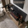 3-Side Electric Fireplace Display: The built-in electric fireplace features a panoramic three-sided glass view with customizable flame colors, ember effects, and brightness levels, making this electric fireplace tv stand a stunning fireplace entertainment center for any living space.