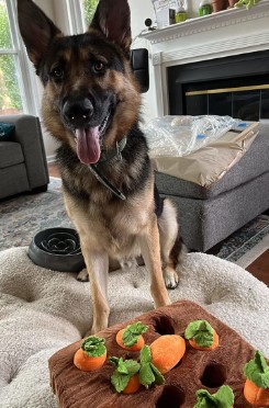 This toy is a great way to keep my dog mentally stimulated. He enjoys pulling the carrots out and stays calm and focused while playing. Excellent quality and very creative design.