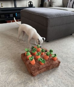 My dog is obsessed with this carrot farm toy. It’s cute, well-made, and great for keeping him calm while I work. One of the best toys I’ve bought.