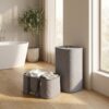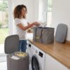 This laundry basket with lid looks modern and doesn’t take up much space. The removable laundry bags are machine washable, which is a huge plus.