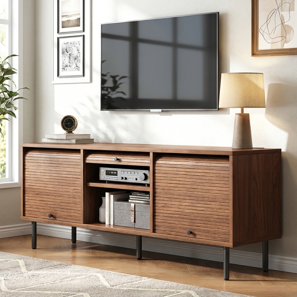 The TV stand feels very durable and well-made. It holds my TV, soundbar, and décor items without any issues. The mid-century modern design really elevates the room.