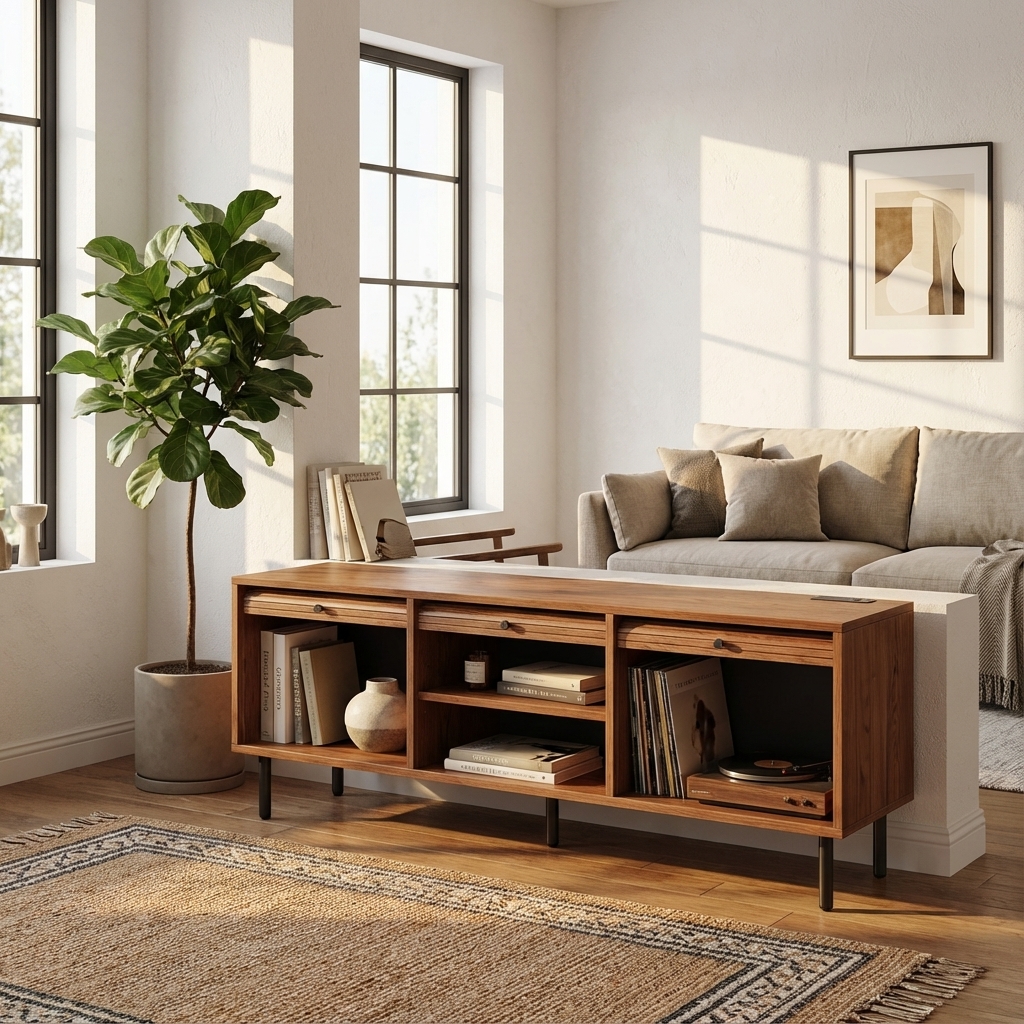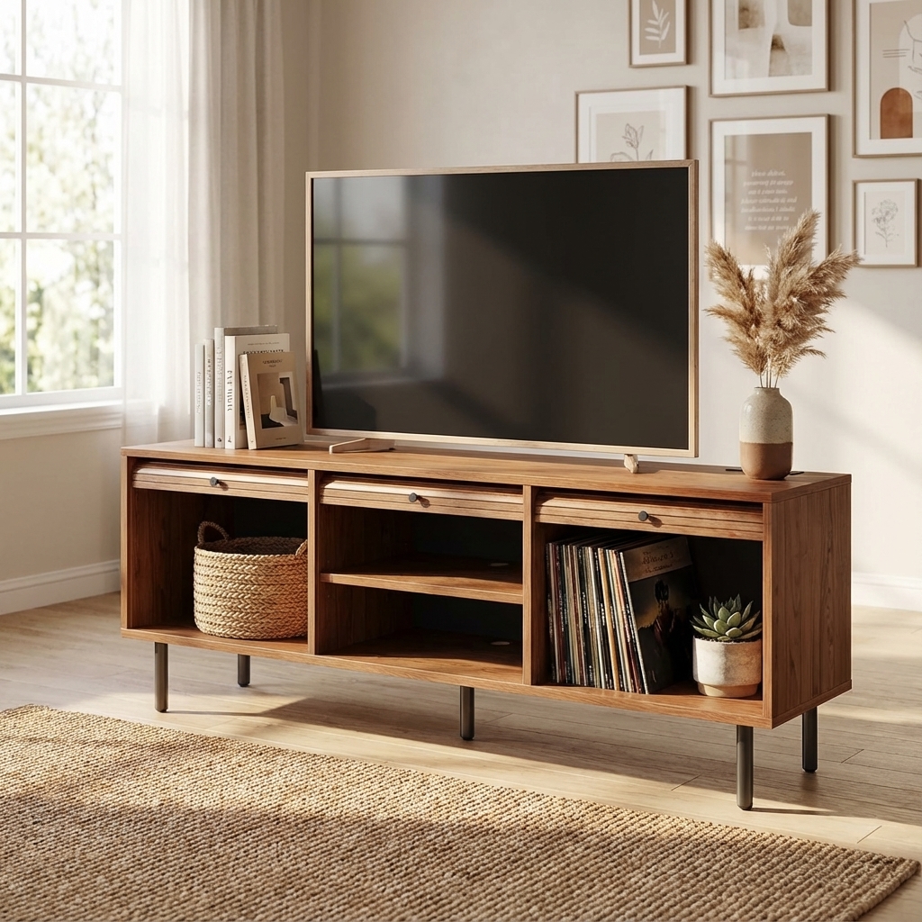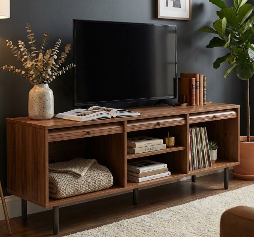 I’m impressed with how solid this TV stand feels. The open shelves are perfect for organizing magazines and décor while still keeping everything accessible.