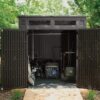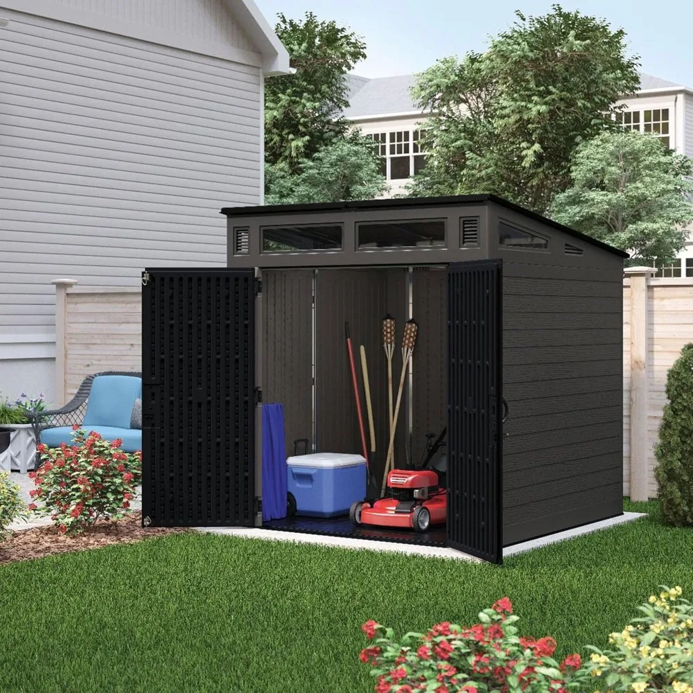 Upgrade your outdoor space with this modern outdoor storage shed with floor included, offering a clean, contemporary look that complements any patio, backyard, or garden. With a 200 cu. ft. capacity, this resin outdoor storage shed provides ample room for bikes, tools, trash bins, and garden supplies. Unlike traditional barn-style sheds, this modern shed blends sleek design with high functionality — the perfect backyard storage shed or outdoor storage unit for modern homes.