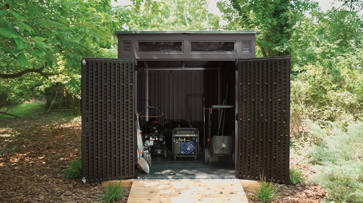 Built from multi-wall resin panels, this resin storage shed is engineered for strength and stability. The durable construction ensures year-round protection against rain, snow, UV rays, and rust, making it a reliable outdoor storage shed or resin garden shed that withstands any weather condition. Ideal for homeowners seeking long-lasting outdoor storage without the maintenance of wood or metal.