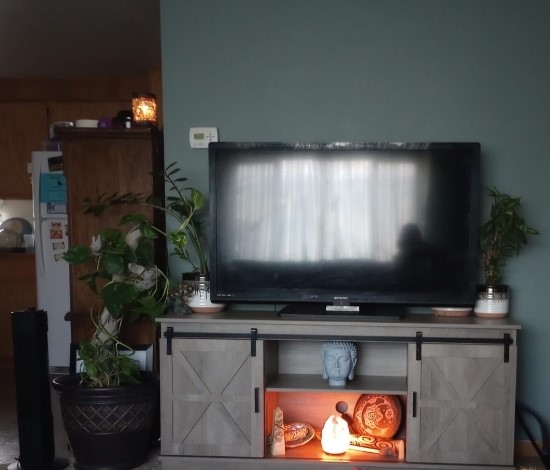 This TV stand is the perfect blend of modern and rustic style. It fits my 65-inch TV beautifully, and the sliding barn doors add so much character to our living room.