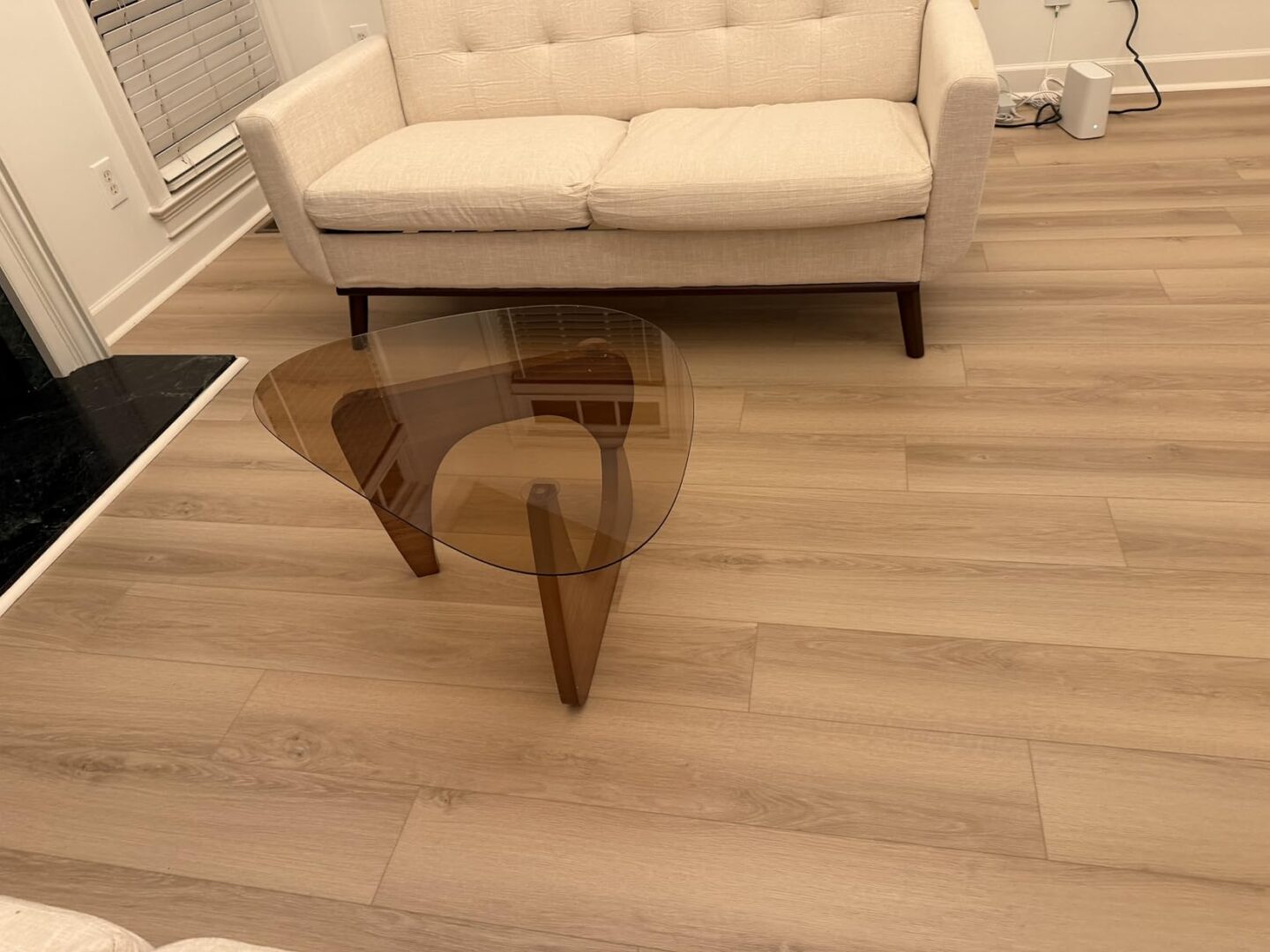 The construction is impressive. The wood base is strong and well-balanced, and the tempered glass top feels secure. It doesn’t tip or shift. I’ve used it as a coffee table and even as a tea table when hosting friends. Very versatile piece.