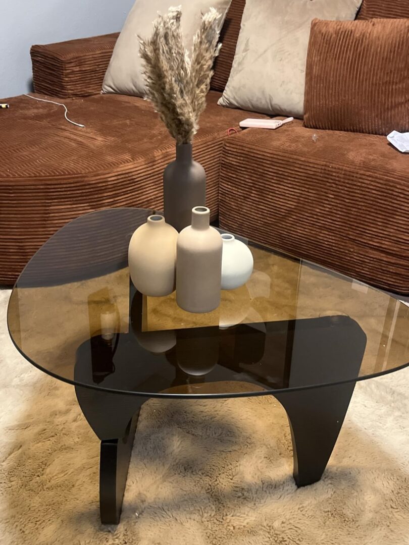 This coffee table is beautifully made. The wood feels strong and well-treated, and the glass top is thick and scratch-resistant. I’ve had other glass tables before, but this one feels much more premium and durable.