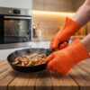 Crafted from high-quality silicone, these silicone cooking gloves offer excellent heat insulation. The durable construction makes them