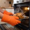 safe for moving hot food, racks, or grills, serving as a reliable oven mitt with silicone protection.