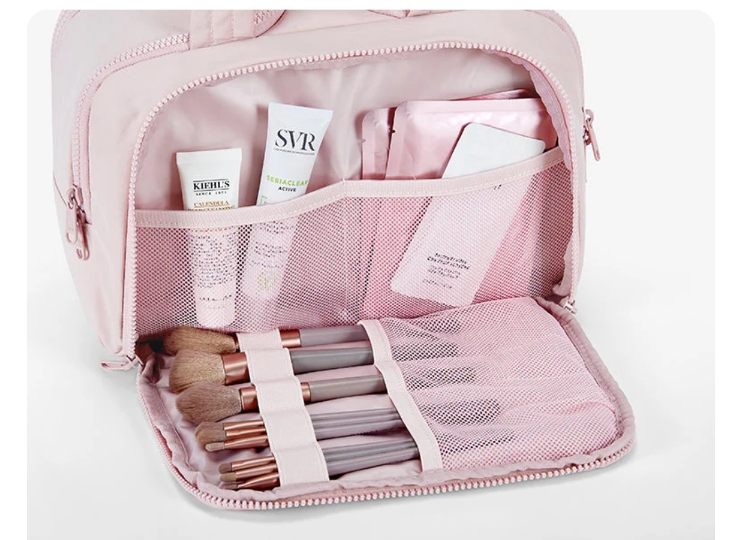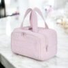 Our large toiletry bag is made from soft, luxurious materials, giving it a plush, pillow-like feel. The padded handle is gentle on your hand, perfect for easy carrying. This chic makeup organizer bag doubles as a cosmetics bag or toiletry glam bag, adding a touch of elegance to your travel essentials.