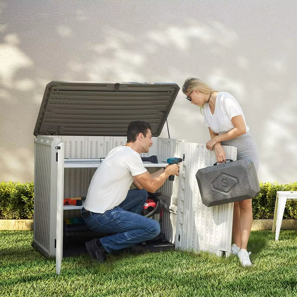 - Versatile Vertical Storage: Perfectly sized (29.1″D x 50″W x 41″H) for storing a variety of items, including tools, sundries, and up to two 33-gallon trash cans. Suitable for indoor and outdoor use in various settings.